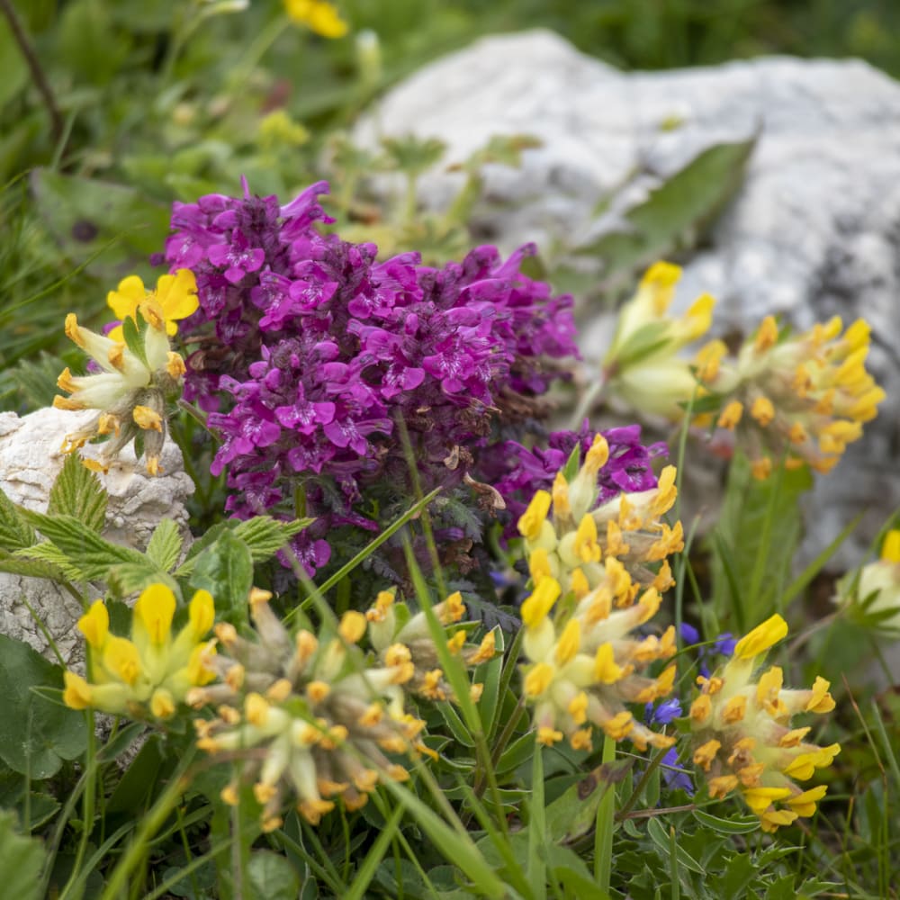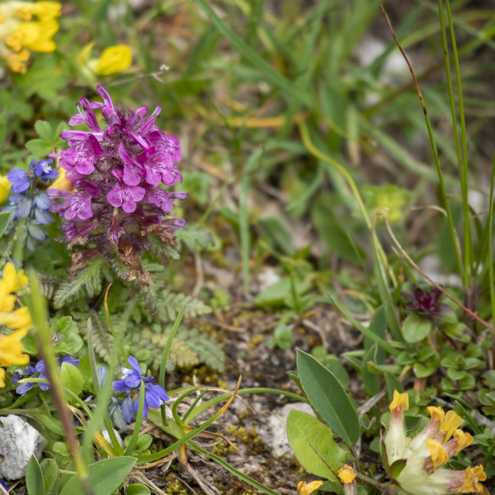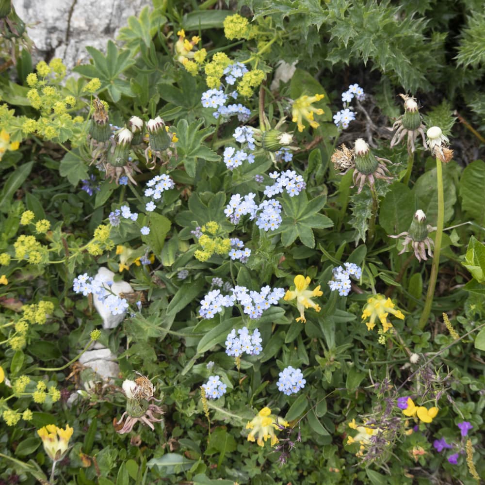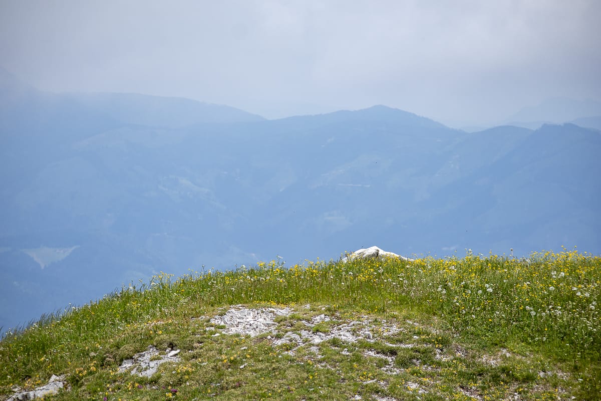 Das Wetter ist durchwachsen, aber der Hochobir ruft. Er ist wolkenverhangen und bleibt es auch bis zum Nachmittag. Entschädigt werden wir durch die Blütenpracht auf den Almwiesen des Kalkstocks.