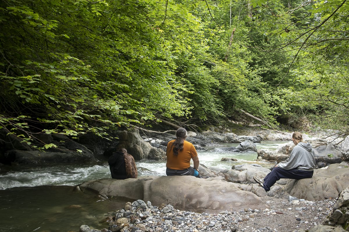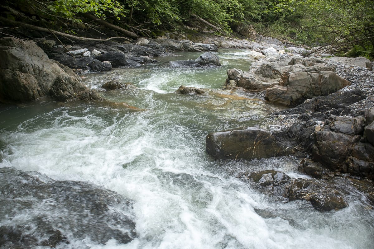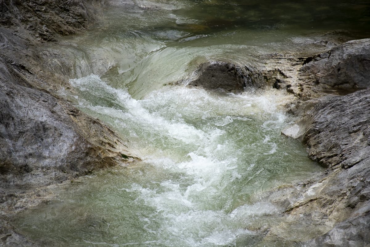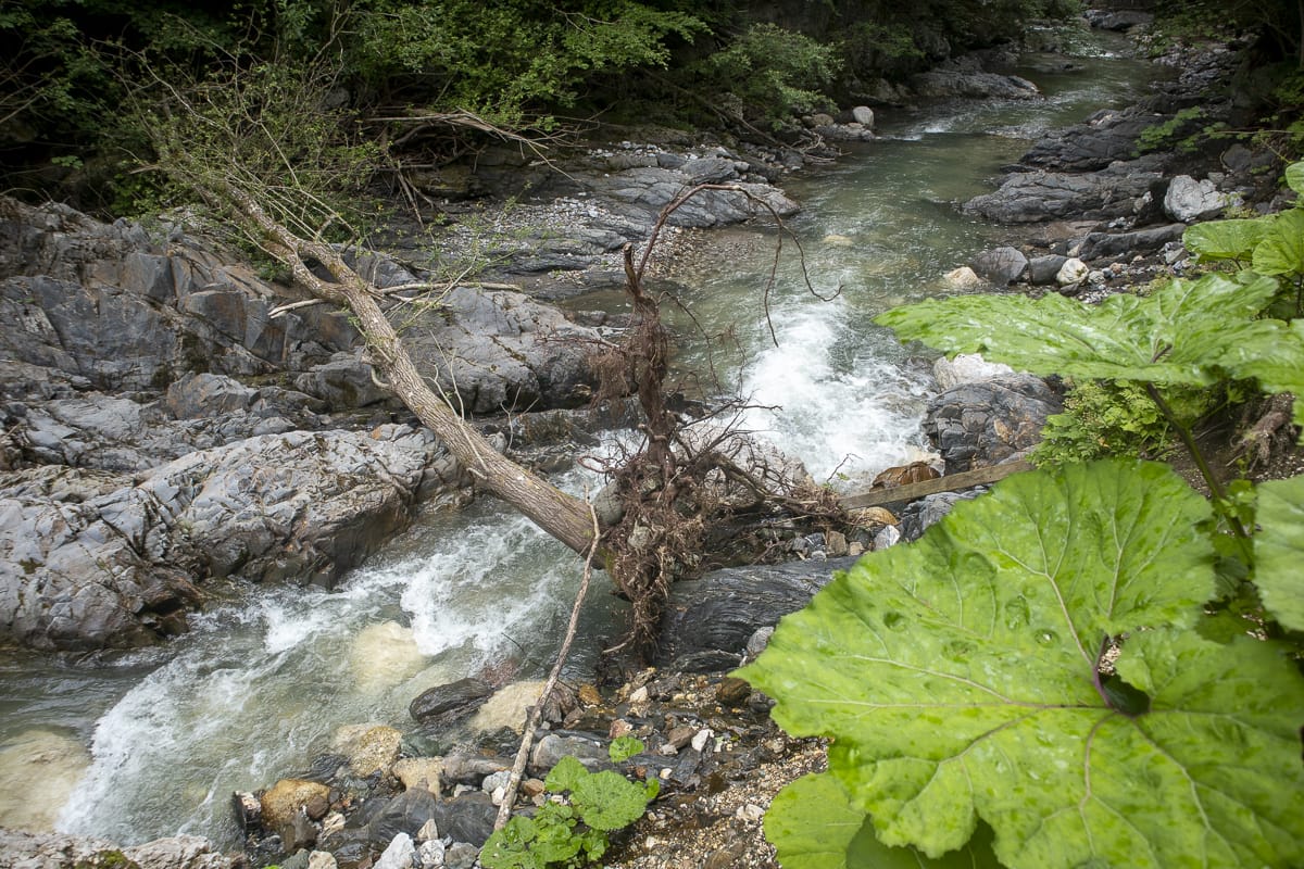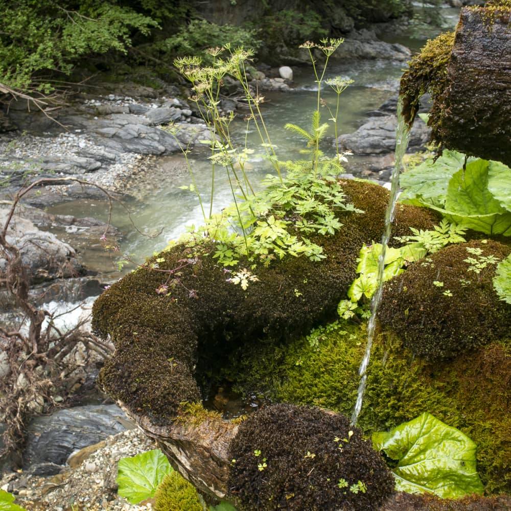 Ein erster Stopp beim „Silberbrünndl“, dort gibt es einen Abgang zum Trögener Bach für ein Kennenlernen. Was auffällt: Das Wasser ist etwas trüb, dessen Farbe bräunlich, nicht türkisblau wie erwartet – aber ein „Paradies für Fliegenfischer“. Es muss also durchaus sauber sein.
