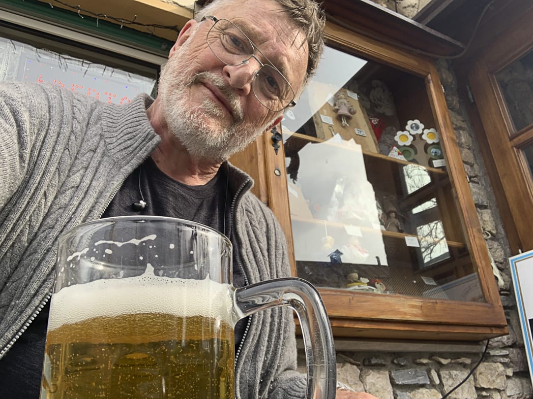 Danach beginnt der erste Anstieg, bei durchwachsenem Wetter. In Rigolato dann ein Zwischenstopp (das billigste Essen ever!) im einzigen offenen Lokal. Bei Forni Avoltri dann eine schöne Rampe und weiter geht’s bergauf mit einigen Tornanti bis zum Pass, der dann wieder ins Piavetal führt. Es ist kalt und regnerisch. Aber: ein Bier muss sein, bevor es weitergeht.
