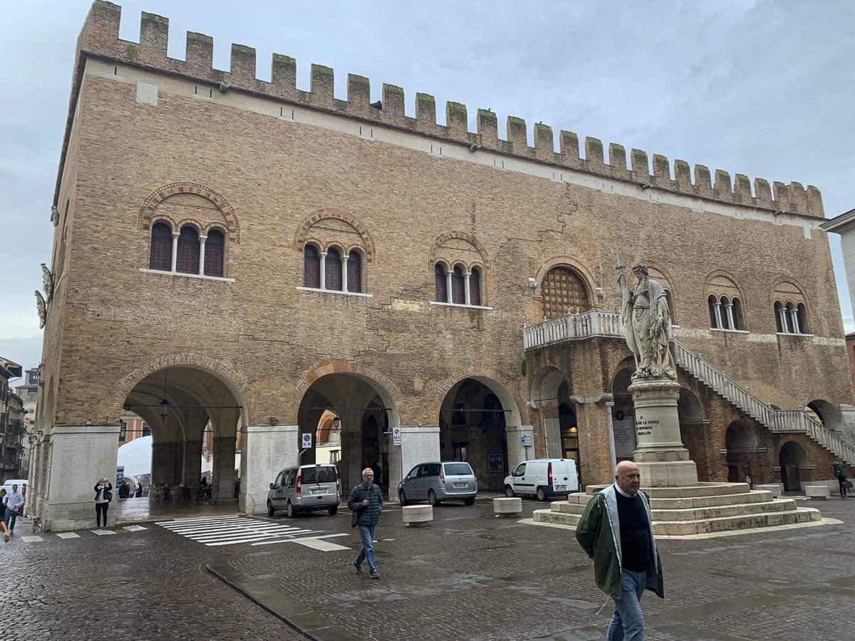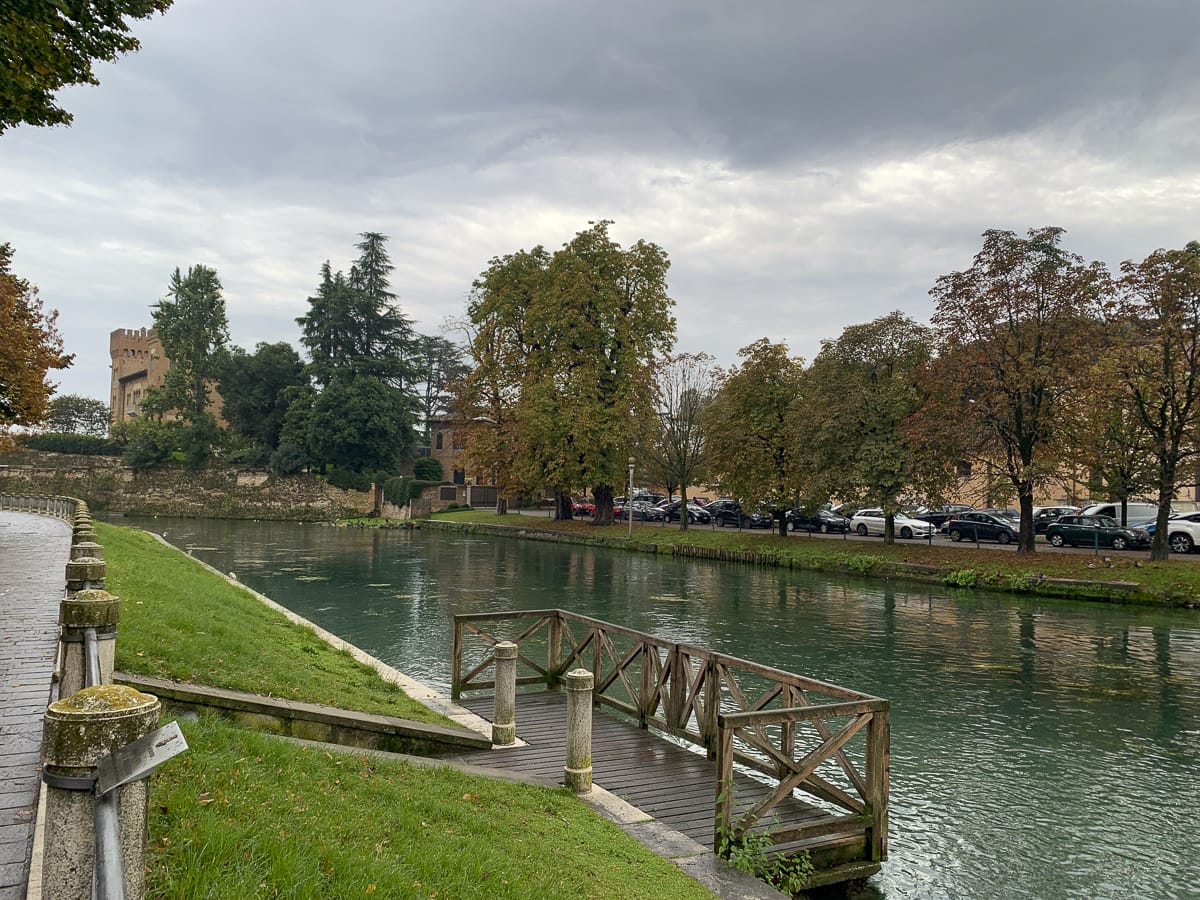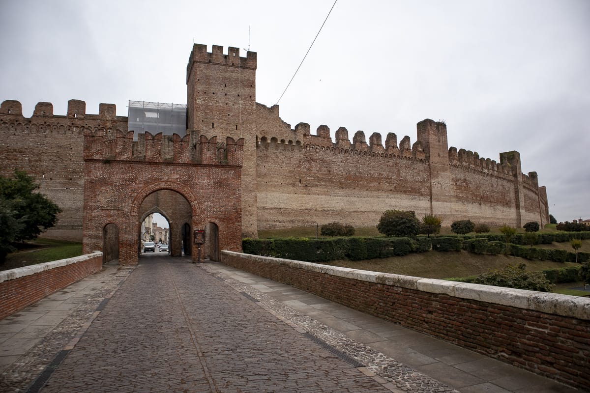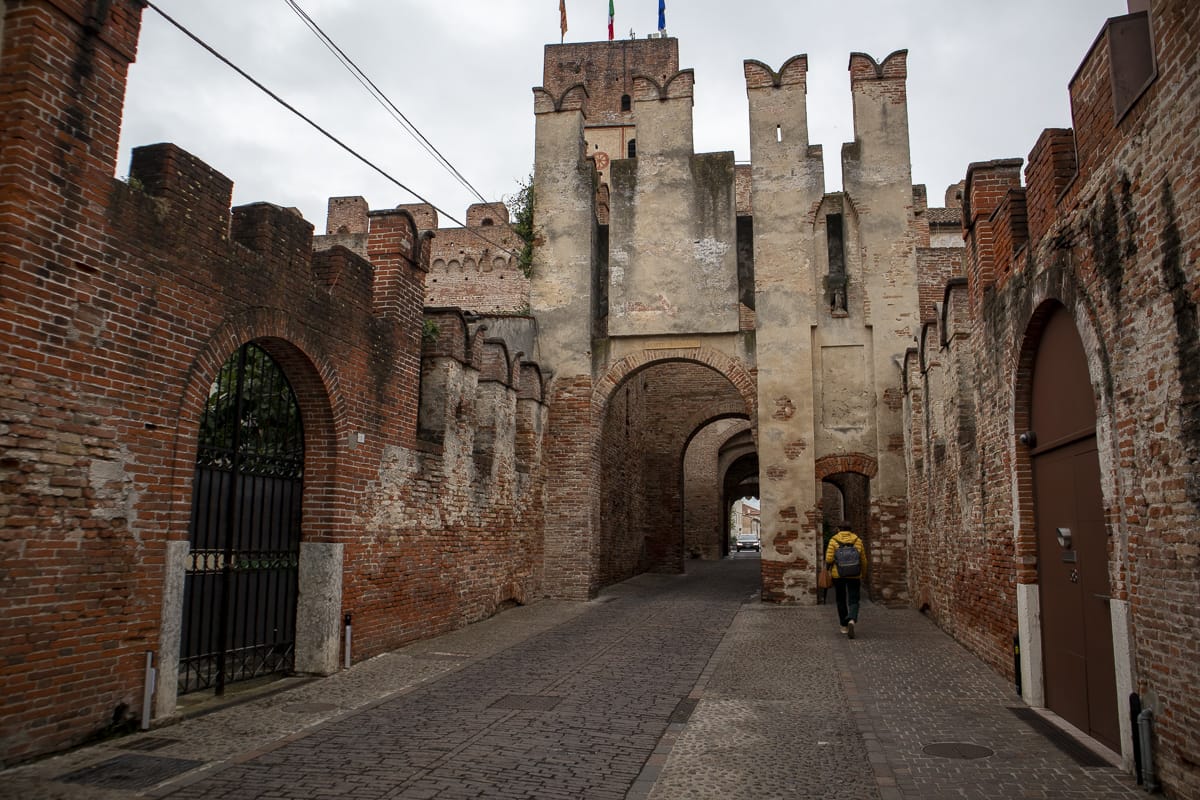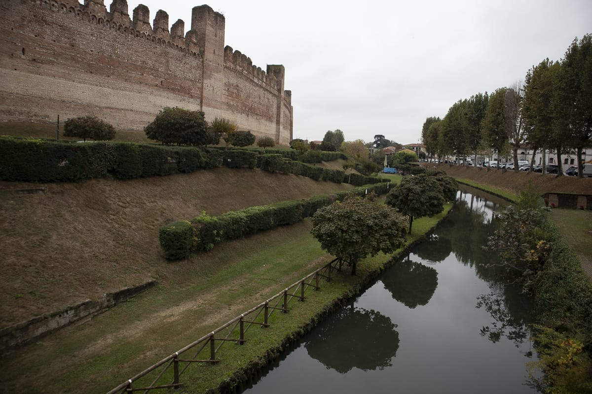 Der Ortskern von Cittadella: eine Festungsanlage, oval, mit Wassergraben und doppeltem Mauerring aus Ziegeln. Faszinierend, zugleich sieht das Ganze wie eine unwirkliche Kulisse aus, die an Palma Nova oder auch ein wenig an Carcassonne erinnert.