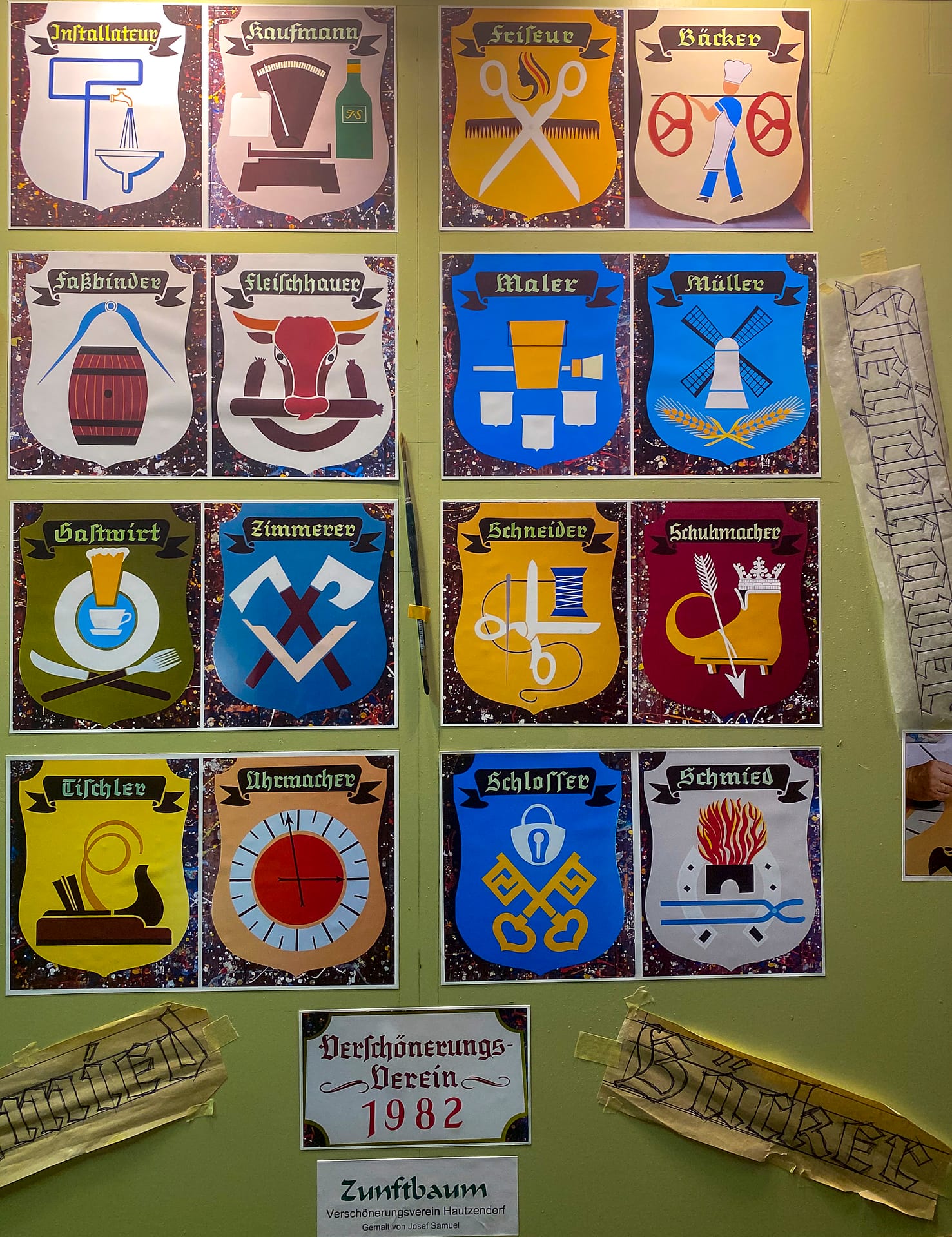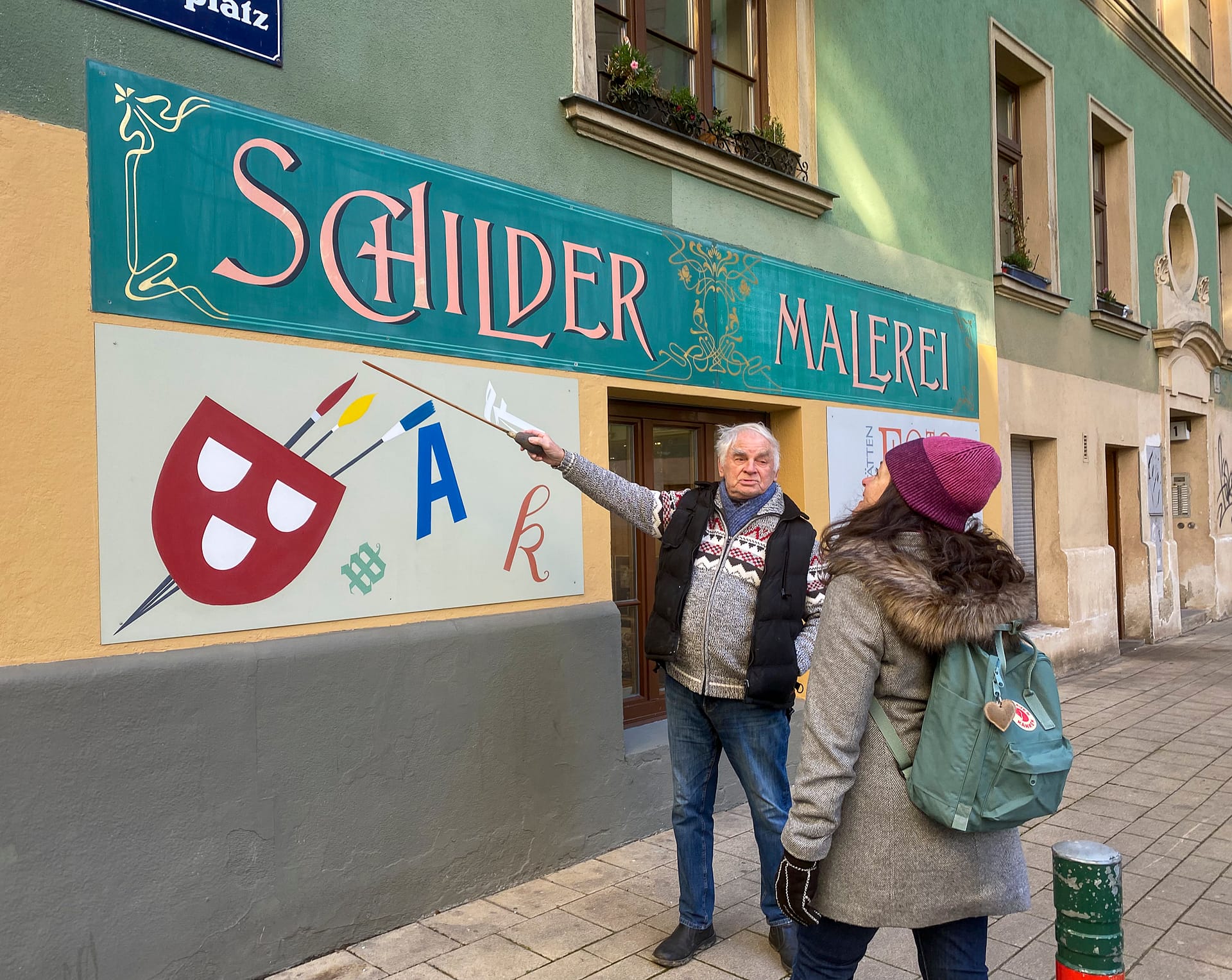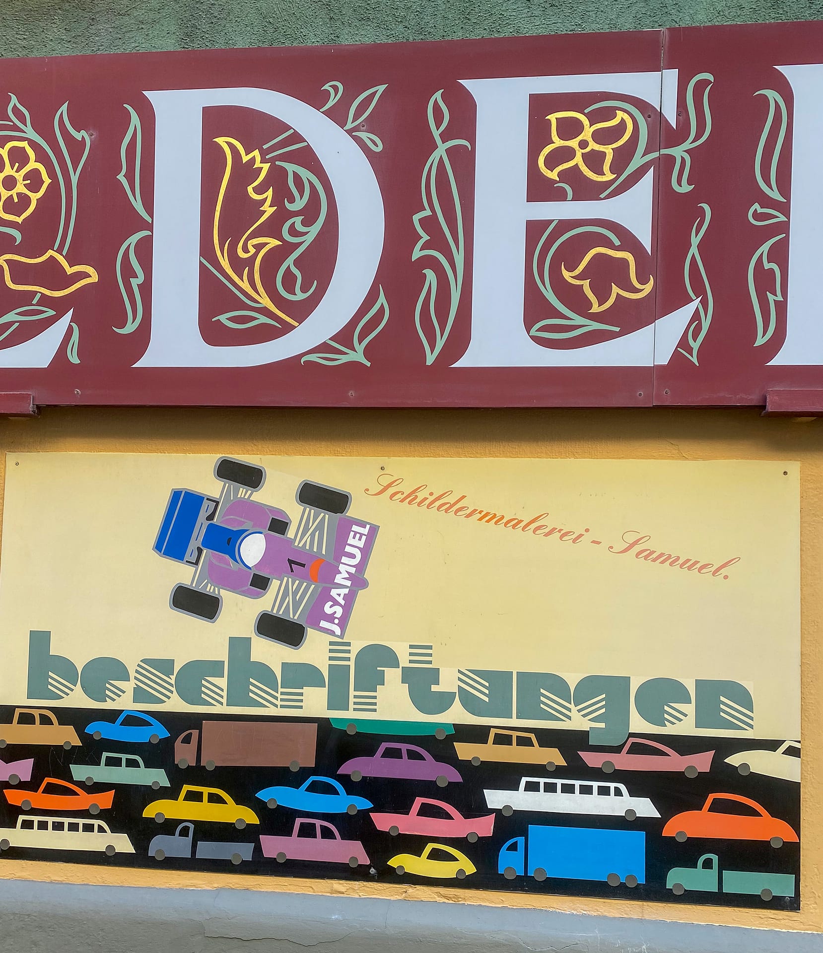 Ja, noch gibt es einen gelernten Schildermaler in Österreich. Er sei der Letzte, sagt Herr Samuel in der Mühlgasse im Wiener 4.Bezirk. Steigt mal hinunter zur Werkstatt im Souterrain, taucht ein in andere Zeit, wo Buchstaben einzeln von Hand gezeichnet und gemalt wurden. Jeder Schildermaler hatte seinen eigenen Stil, Handwerker und Künstler in einem. Die Farben beinhalten Gift, halten aber jahrzentelang der Sonne stand. Herr Samuel liebt sie und verachtet die Neuen.