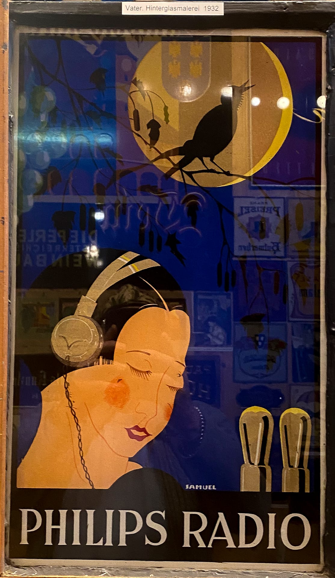 Der 3D-Effekt entsteht durch die Holzschnittarbeit, die dem bemalten Glas hinterlegt wird. Welch kunstvolle Arbeit!