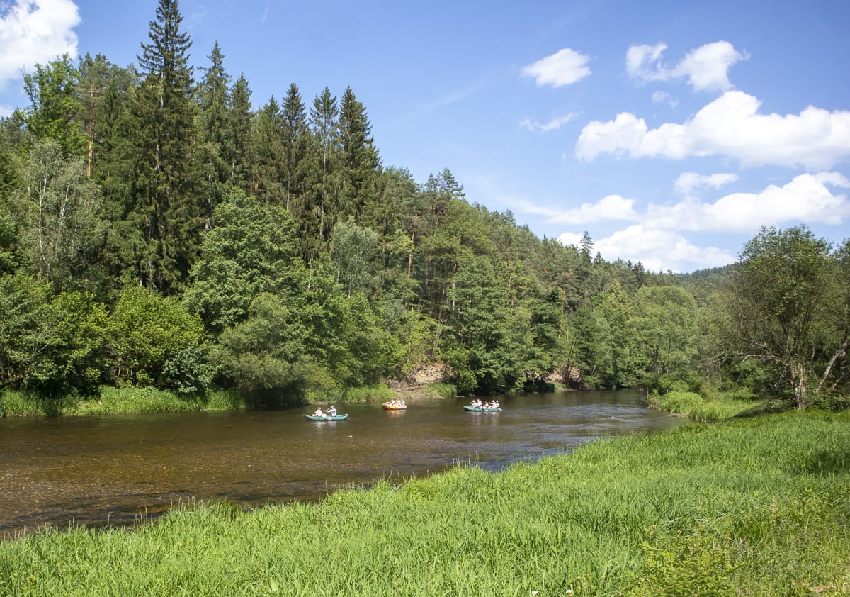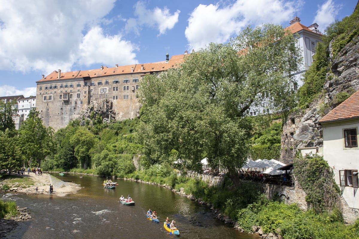 Und es geht die Moldau aufwärts weiter; kaum hat man die glänzende Stadt verlassen, kommen die Anlegestellen und Campingplätze der Paddler und ärmliche Ortschaften mit vor sich hindämmernden Industriebauten (z.B. Větřní). Nächster Stopp: Rosenberg.