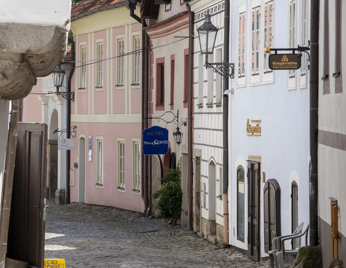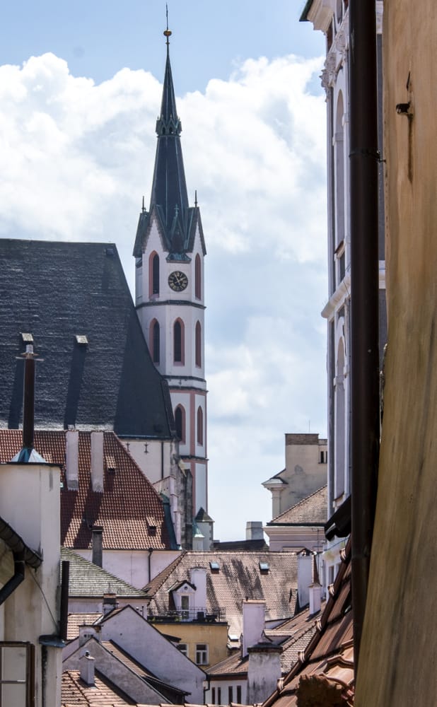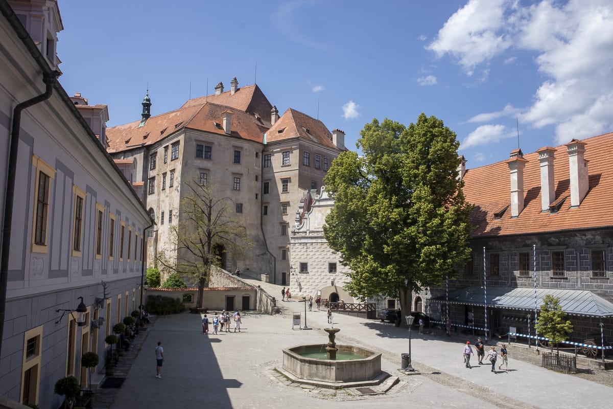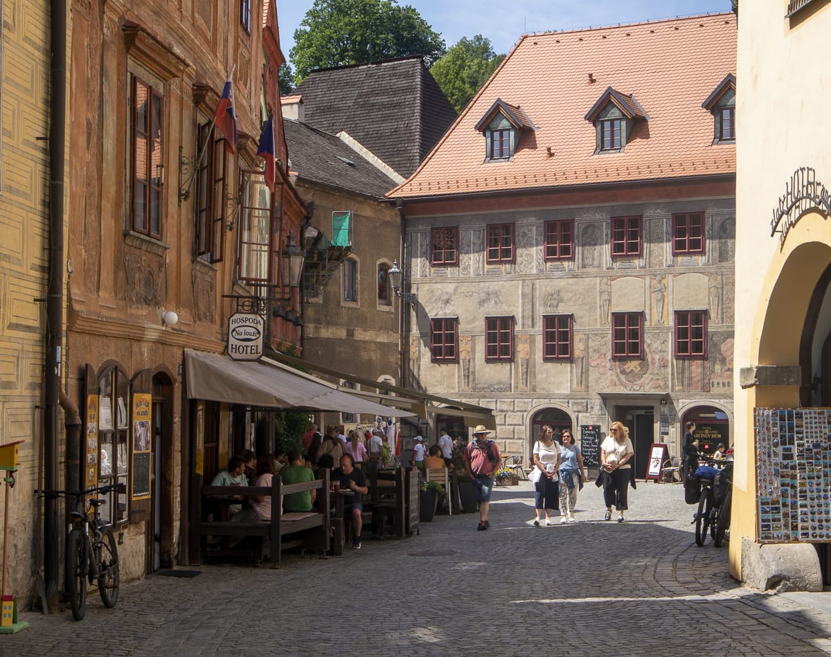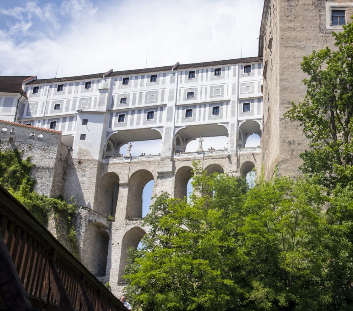 Bei der Geschichte-Exkursion 1981 war ich schon mal da, aber die Erinnerungen sind weitgehend dahin. Eine recht alte Stadt, die sich um den Burgberg (Latrán) und ovale Insel in einem Moldauknie entwickelte; erste Erwähnung schon 1253. Ideal gelegen an der Salzstraße an einem Moldauübergang (dem dritten nach Hohenfurth und Zaton). Die Geschichte von Ort und Burg wird von vier adeligen Geschlechtern geprägt, den Wittigonen, den Rosenberg, Eggenberg (Bezug zu Graz!) und schließlich den Schwarzenberg, deren Besitz 1948 verstaatlicht wurde.