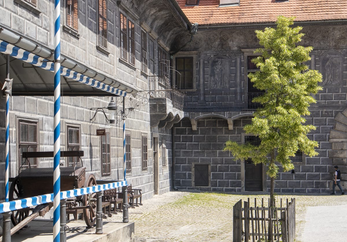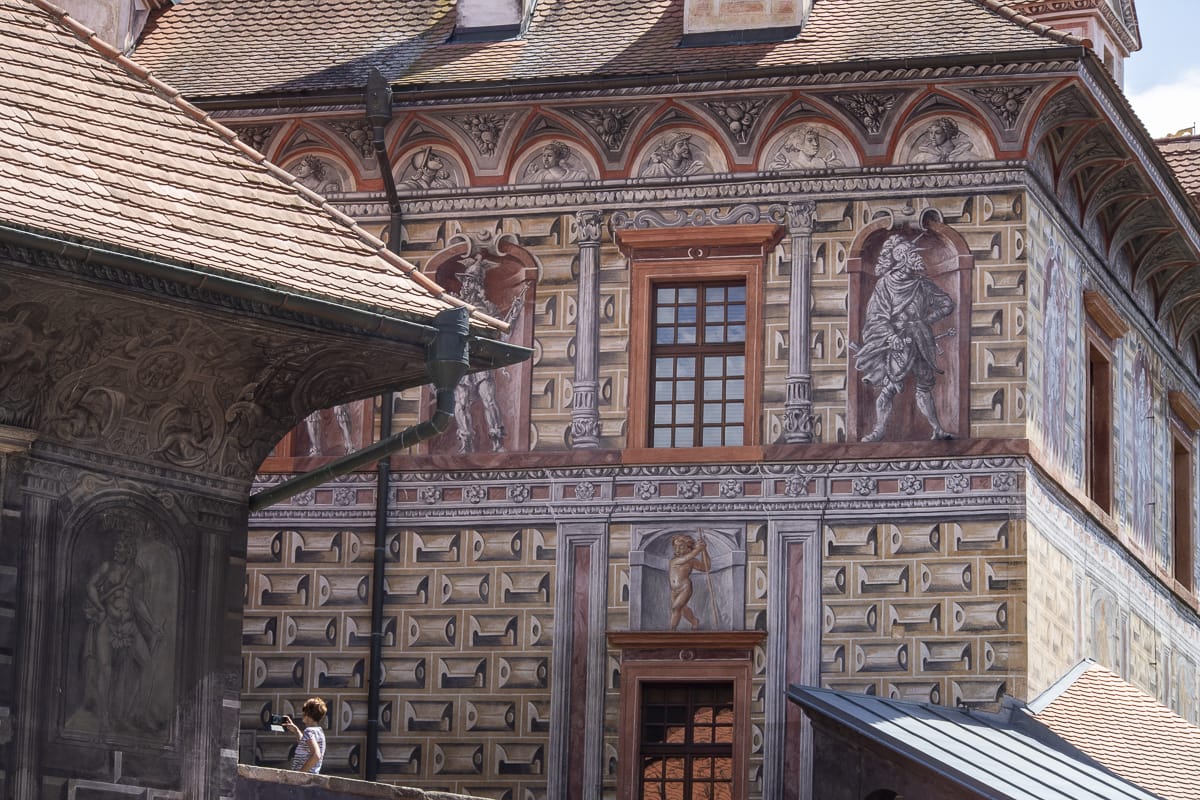 Da ich nur wenig mehr als eine Stunde Zeit habe, noch schnell auf die Burganlage, ein paar Eindrücke sammeln. Fantastisch ist die schiere Ausdehnung, sie ist nach Prag die zweitgrößte Anlage in Tschechien. Und nicht umsonst ist das Ensemble UNESCO-Weltkulturerbe, was auch am Andrang der Besucher:innen (zumal aus Fernost) zu sehen ist.