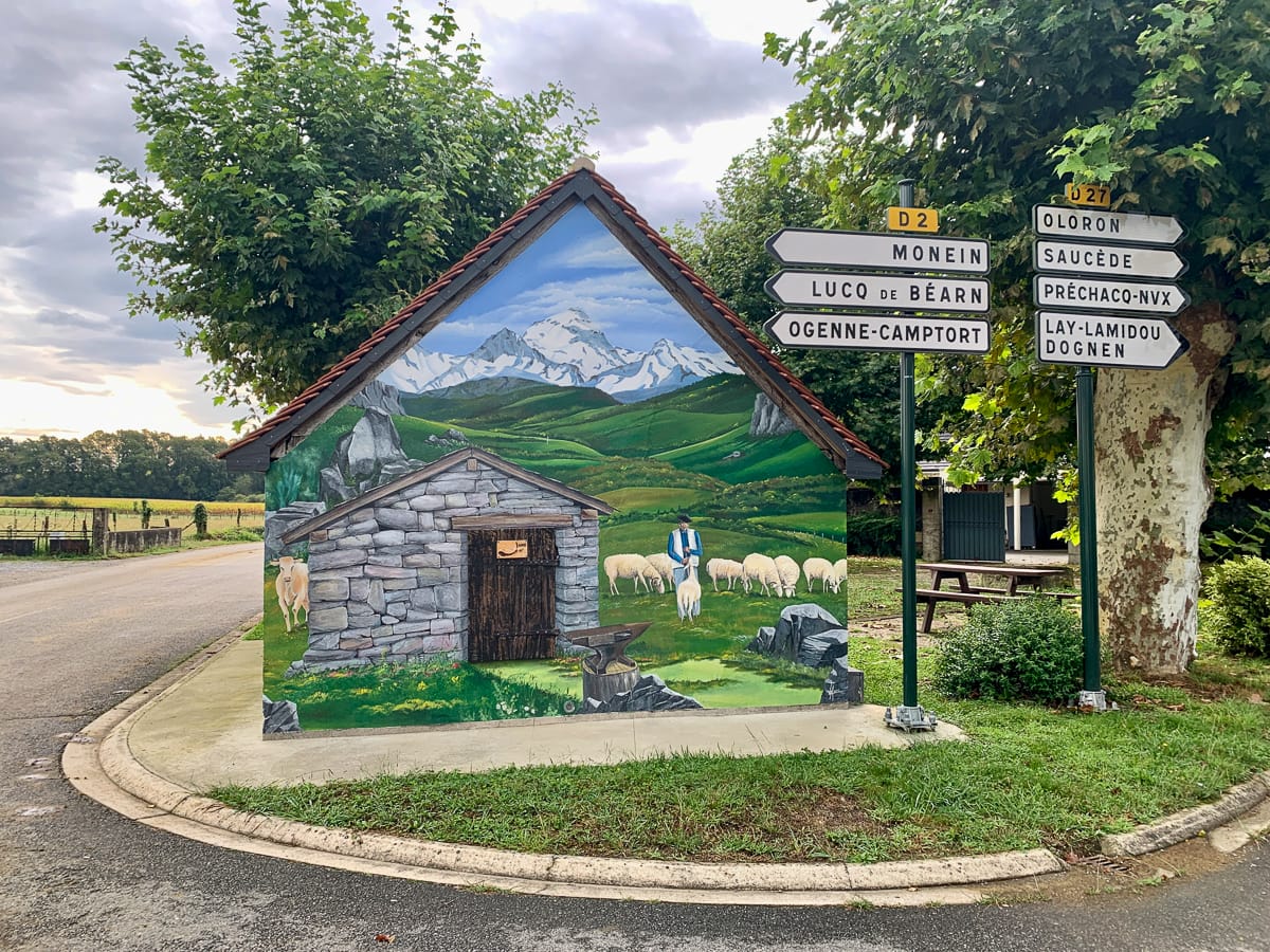 Über die Hügel geht es nach Monein zu einem Vormittagskaffee beim einzigen offenen Café am großen, rechteckigen Marktplatz des netten Ortes.