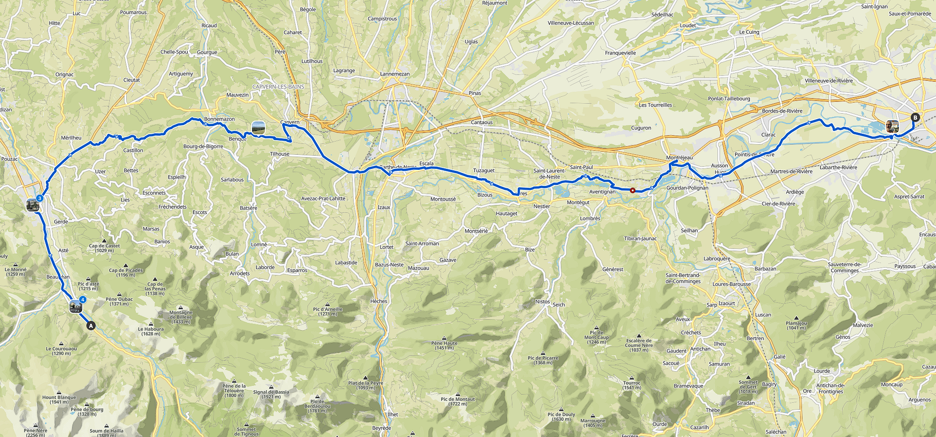 In Barthe-de-Neste rettet mich ein 7/24-offenes Café vor dem Verdursten. Montréjeau recht schön.
