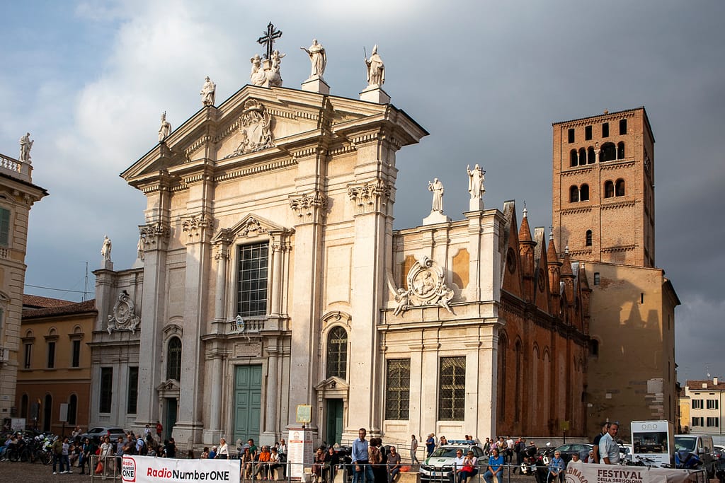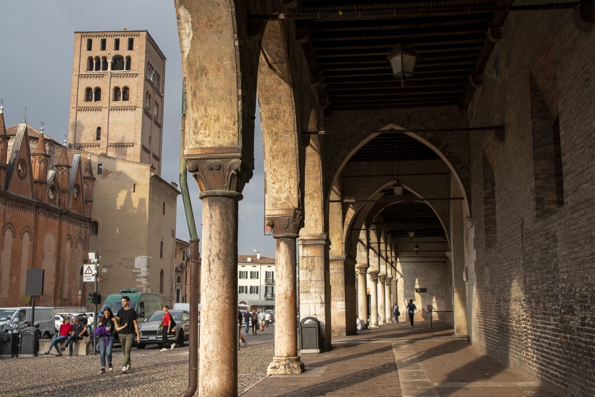 Auf dem Weg zum Palazzo Ducale passieren wir die gut besuchte Promenade am Lago di Mezzo. Am Piazza Sordello beeindruckt die Schönheit des Platzes und der beiden berühmten Bauten, dem Herzogspalast und dem Dom. Letzterer wurde zu einem wahren Erlebnis. Die hallenartige Anlage, die klassischen korinthischen Säulen, die zwei großzügigen Seitenschiffe mit Tonnengewölben erinnern an antike Tempel (oder Basiliken) mehr als an Kirchenbauten, wie wir sie aus Österreich kennen. Dazu passt auch die hervorstechende klassizistische Fassade aus weißem Marmor.