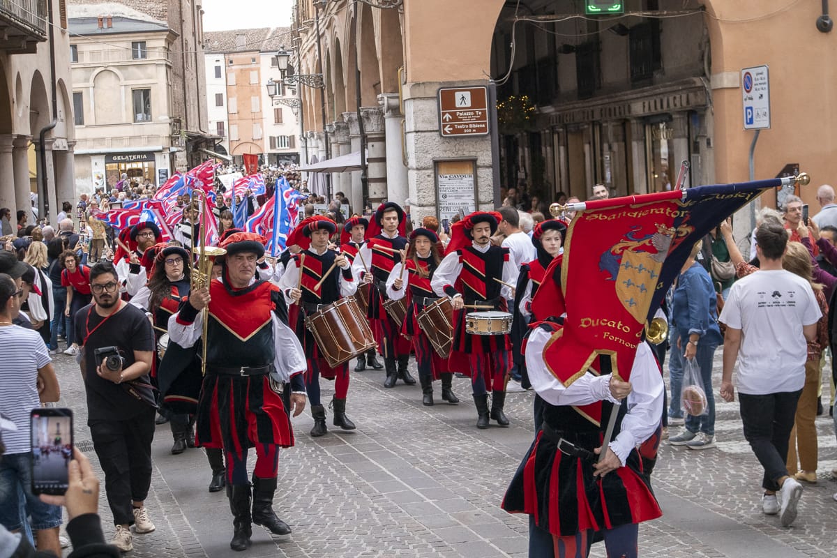 Eine historische Prozession in Renaissance-Kleidung wird durch die Straßen des Zentrums ziehen, die an die Hochzeit zwischen Isabella d’Este und Francesco II Gonzaga erinnert, eine Gelegenheit, bei der traditionell der Rosettenkuchen traditionell zum ersten Mal zubereitet wurde, ein Eckpfeiler der Mantua-Konditoreitradition, die speziell von Hofkonditoren geschaffen wurde, um die jungen Braut zu huldigen. Dame, Ritter, Sessels und Streitkräfte werden das Brautpaar in einer Hochzeitszug bis zum Moment ihrer Ehegewerkschaft begleiten.