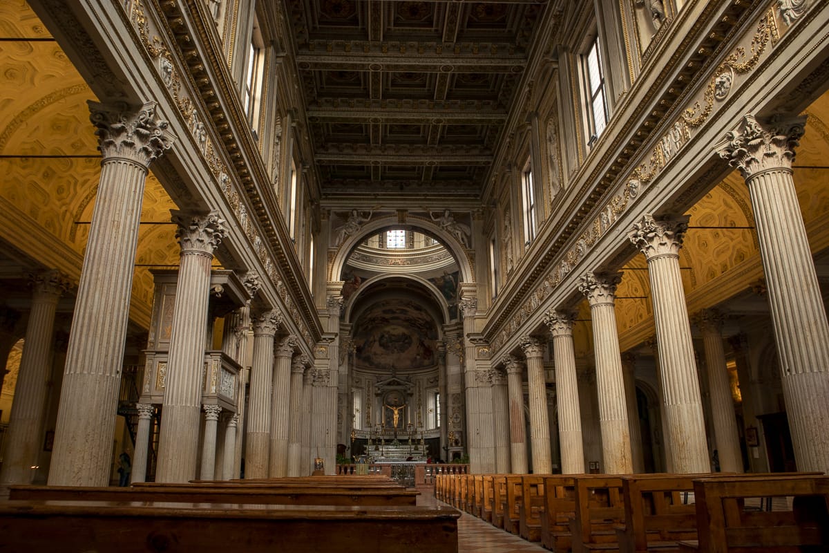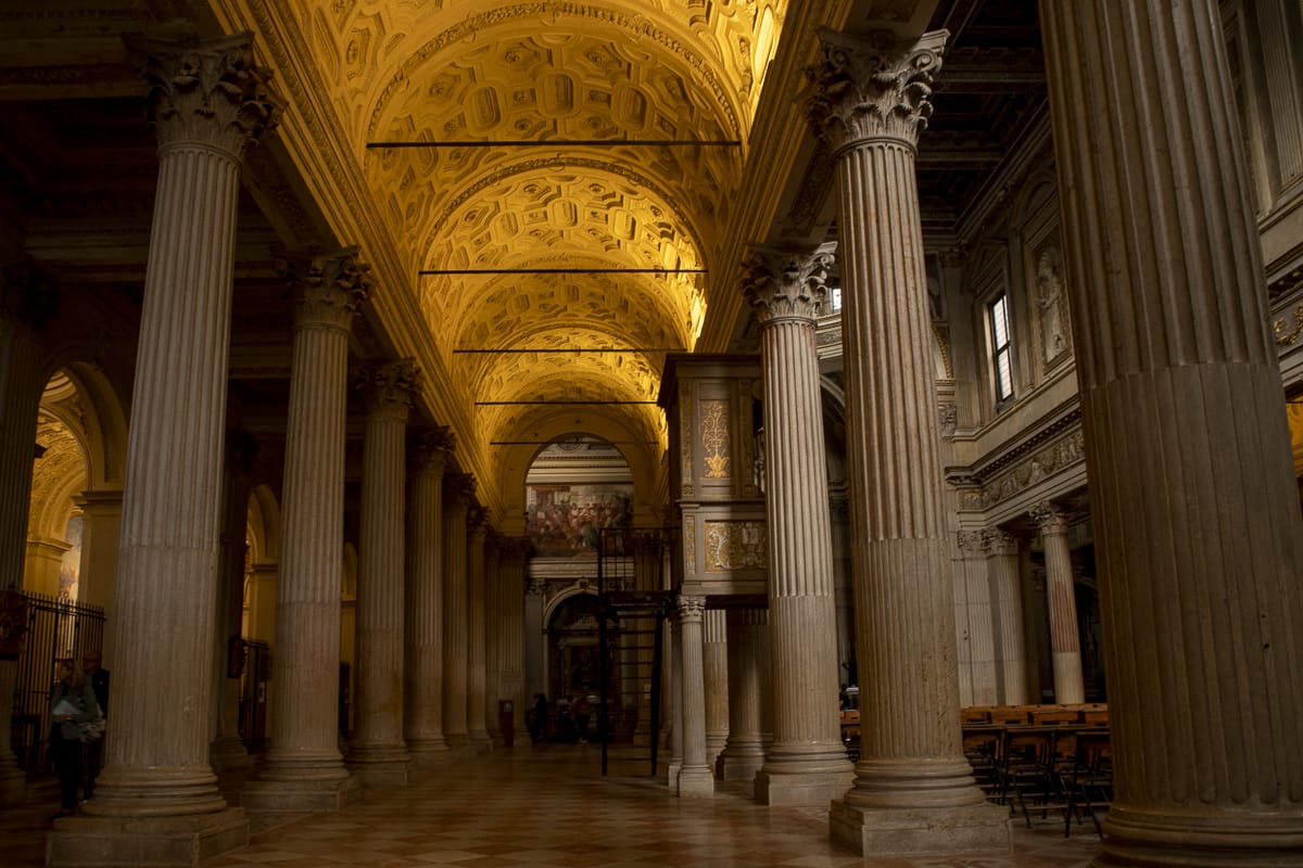 Ich schlage mich zum Palazzo delle Ragione durch, schaue bei der Rotonda di San Lorenzo aus dem 11.Jahrhundert vorbei, einem schönen Rundbau in der Tradition der Grabeskirche in Jerusalem. Dann – ich hab nicht mehr viel Zeit – muss ein Blick in die Kirche Basilica di Sant’Andrea sein. Hier beeindruckt vor allem das wunderschön klassizistische, kassettierte Tonnengewölbe. Die Heilig-Blut-Reliquie ist mir dabei entgangen.