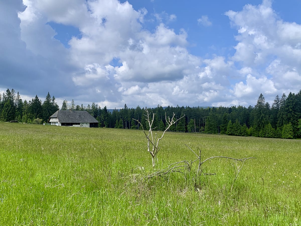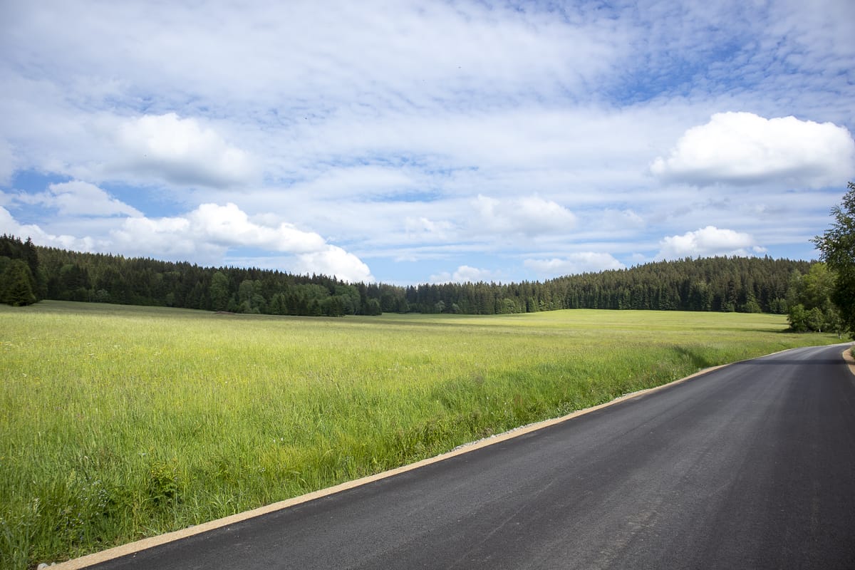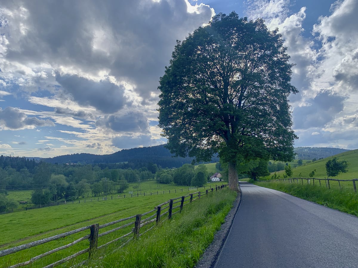 Dann geht es bergab in Richtung Horskà Kvilda / Innergfield. Malerisch schön. Das haben auch die Tourismusmanager:innen inzwischen entdeckt, es gibt eine neue Zufahrtstraße, renovierte Häuser, die auf Chalet machen. Aber: auch wir mögen jetzt wieder glatten Asphalt 😉